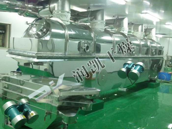 ③由于施加振動(dòng),可使最小流化氣速降低,因而可顯著降低空氣需求量,進(jìn)而降低粉塵層夾帶,配套熱源,風(fēng)機(jī),旋風(fēng)分離器等也可相應(yīng)縮小規(guī)格,成套設(shè)備降低,節(jié)能效果明顯??煞奖愕匾揽空{(diào)整振動(dòng)參數(shù)來(lái)改變?cè)跈C(jī)內(nèi)滯留時(shí)間。其活塞流式的運(yùn)行降低了物料粒度均勻性及規(guī)則性要求,易于獲得均勻的干燥產(chǎn)品。