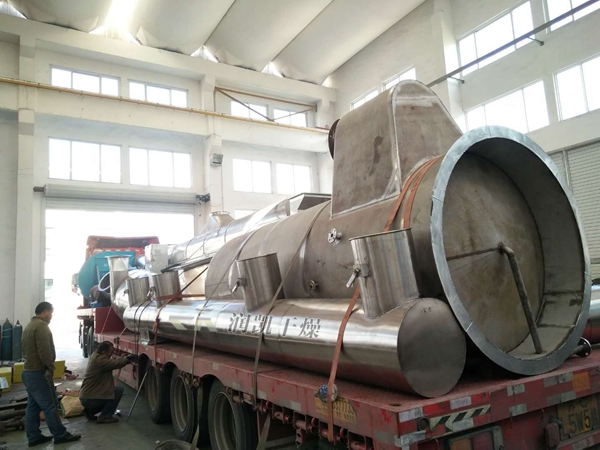 某環(huán)??萍加邢薰居嗁彽囊慌_8*0.8型號的振動流化床已發(fā)運!此套振動流化床包含了進(jìn)料、熱風(fēng)、干燥、尾氣處理、冷卻等系統(tǒng)。在細(xì)節(jié)方面,干燥機(jī)下箱體分室制作,干燥段、加熱段和冷風(fēng)段分隔,且在烘干區(qū)和冷卻區(qū)分別設(shè)有清理口,便于清理落料;在材質(zhì)上,設(shè)備與物料接觸部件材質(zhì)為316L不銹鋼。