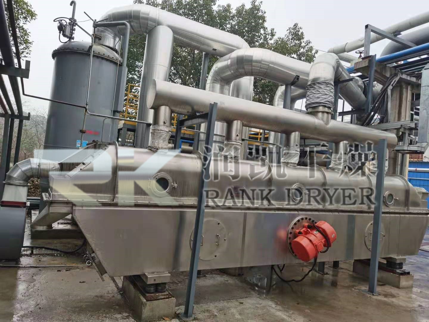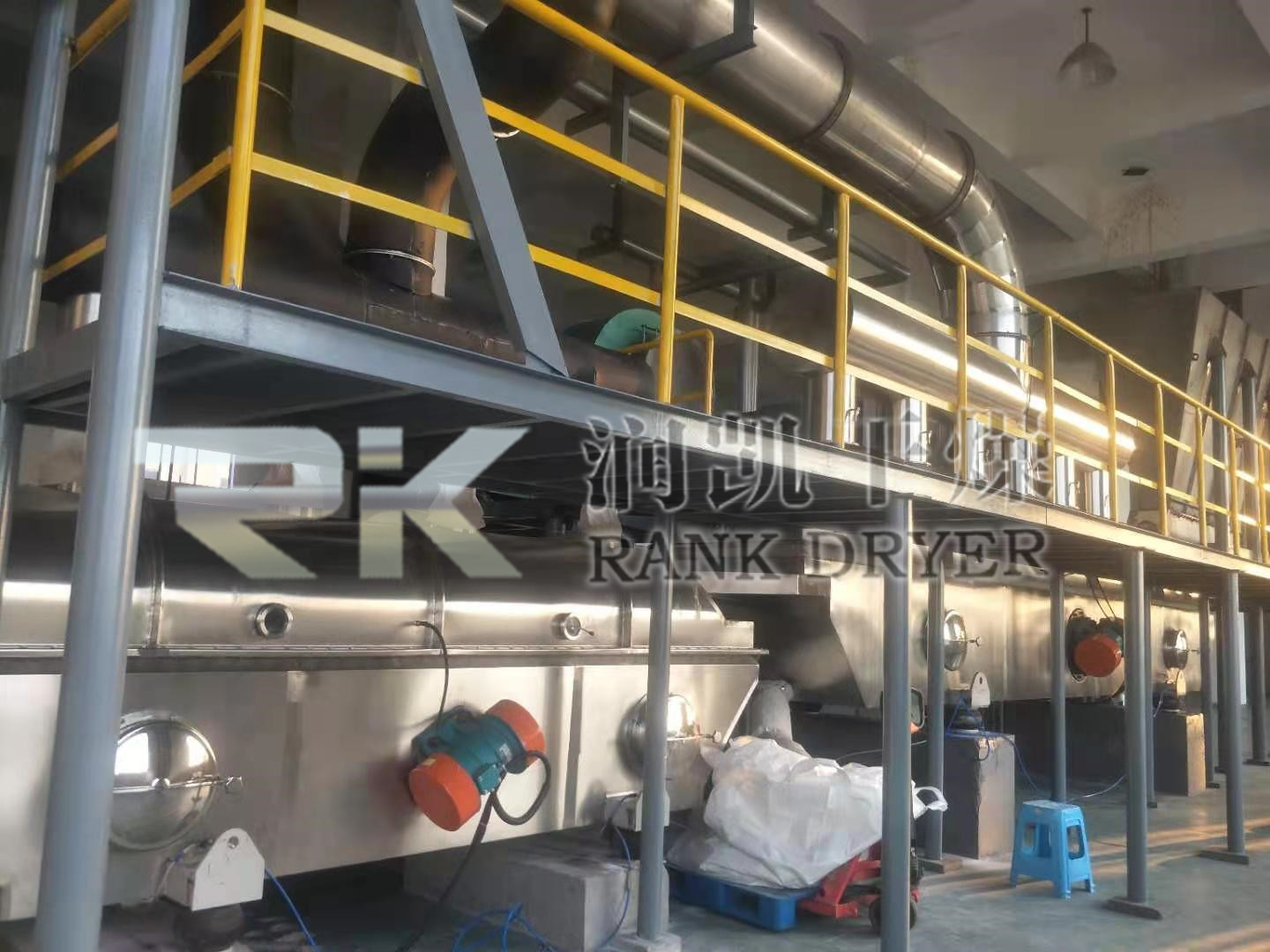 由于施加振動(dòng),可使最小流化氣速降低,因而可顯著降低空氣需求量,進(jìn)而降低粉塵層夾帶,配套熱源,風(fēng)機(jī),旋風(fēng)分離器等也可相應(yīng)縮小規(guī)格,成套設(shè)備降低,節(jié)能效果明顯??煞奖愕匾揽空{(diào)整振動(dòng)參數(shù)來(lái)改變?cè)跈C(jī)內(nèi)滯留時(shí)間。其活塞流式的運(yùn)行降低了物料粒度均勻性及規(guī)則性要求,易于獲得均勻的干燥產(chǎn)品。